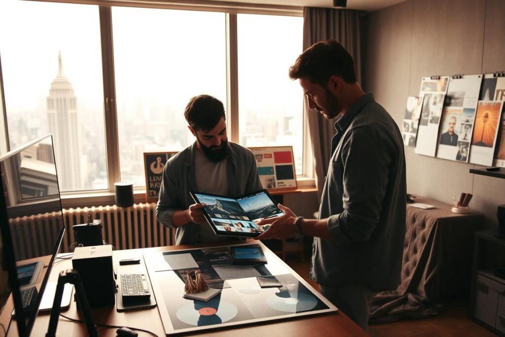 Creating a unique album cover is key. Working with designers who know the music industry is very helpful. A good cover can show the music’s soul and create a visual identity.